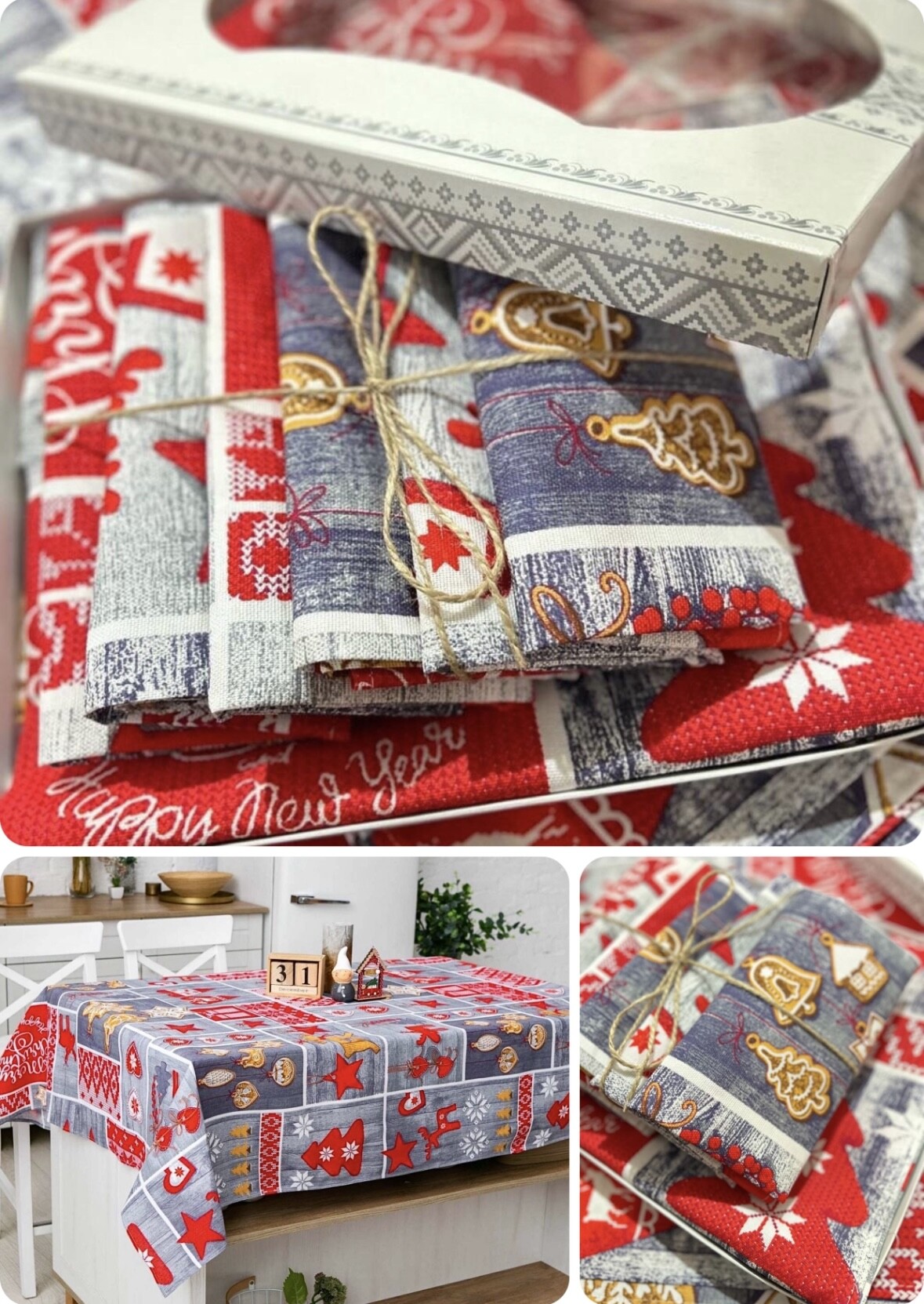 Набір виробів з українським орнаментом включає скатертину та рушники, що відрізняються стильним дизайном і високою якістю. Ідеальний подарунок для різних свят і особливих подій, він привнесе затишок і національний колорит в інтер’єр дому.